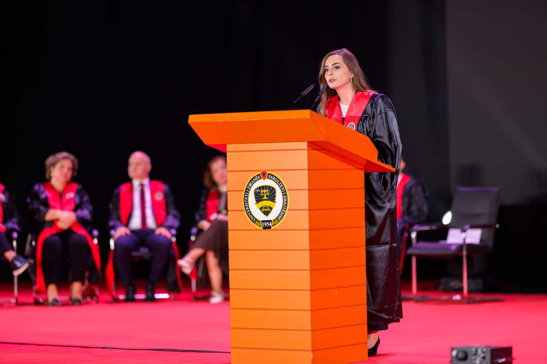 “Është një emocion i veçantë, sidomos kur flas pas dekanes, e cila ka pasur një rol të rëndësishëm në rrugëtimin tim, pasi ka qenë udhëheqëse e tezës sime të diplomës. Është shumë e rëndësishme të mos bëjmë gabimin që shpesh bëjnë studentët kur diplomohen: duket sikur aty merr fund rruga drejt dijes. Të mësoni nga çdo përvojë, çdo ndërveprim, çdo takim dhe vendim që do të merrni. Nga përvoja ime dua t’ju them se do të jeni të sigurt vetëm përmes përvojës që fitoni”, – tha Lamallari.