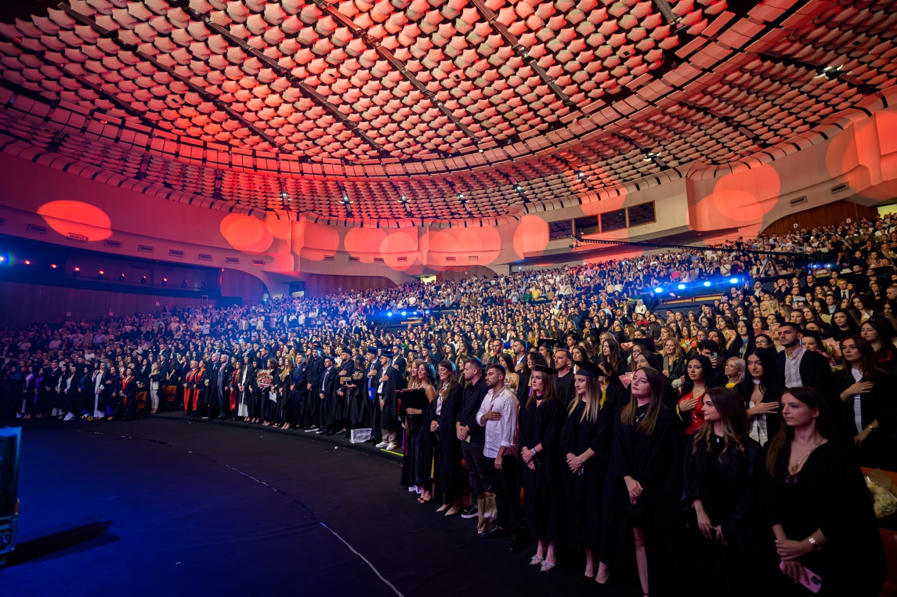 Rreth 1300 studentë të diplomuar në Fakultetin e Drejtësisë të Universitetit të Tiranës, në vitet akademike 2023-2024 dhe 2024-2025, u bashkuan në një ceremoni madhështore diplomimi në Pallatin e Koncerteve. Dekania e Fakultetit, Prof. Dr. Dorina Hoxha, e cilësoi këtë një ditë krenarie.