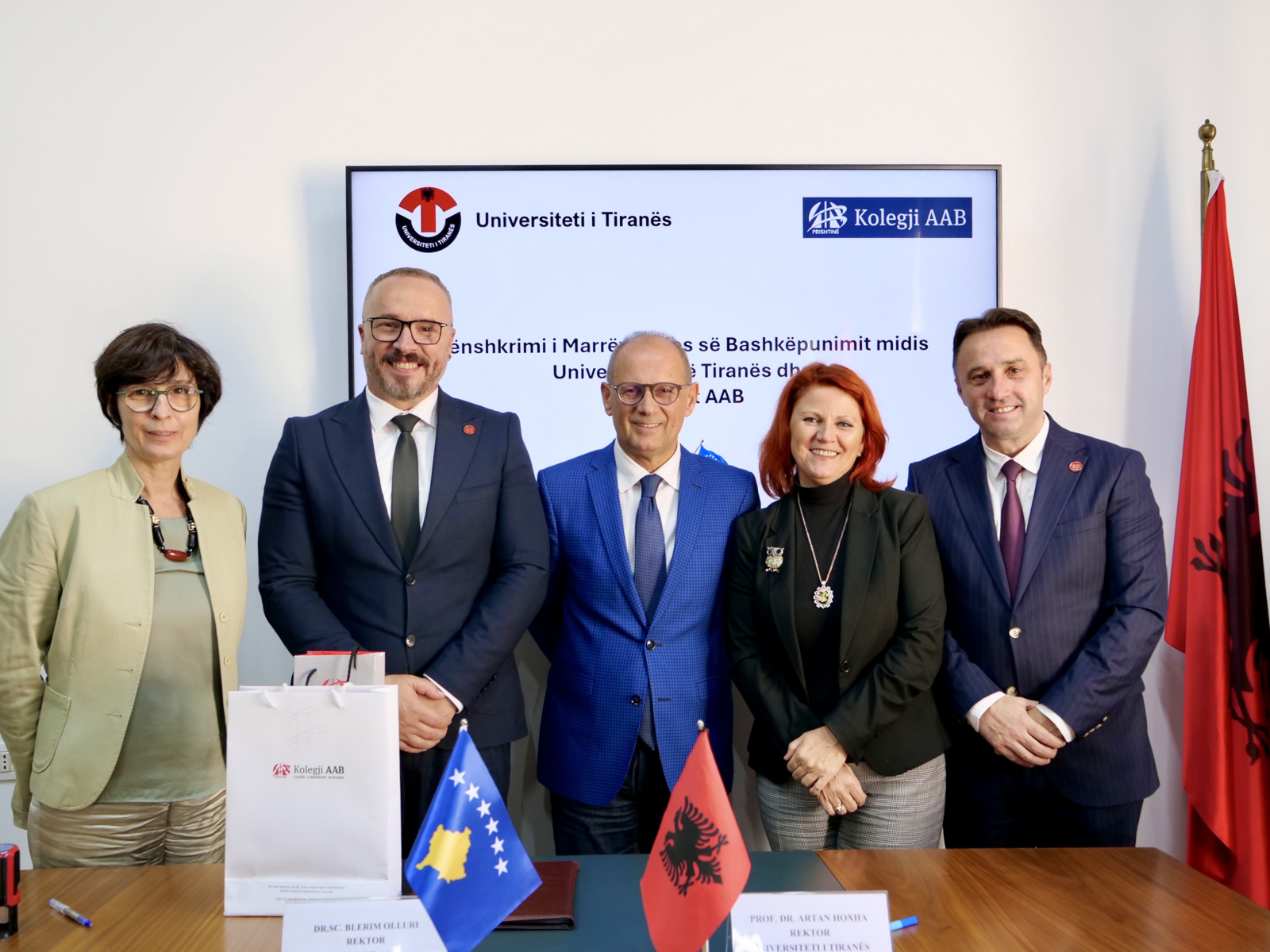 Marrëveshje bashkëpunimi mes Universitetit të Tiranës dhe Kolegjit AAB, Kosovë - UNIVERSITETI I TIRANËS