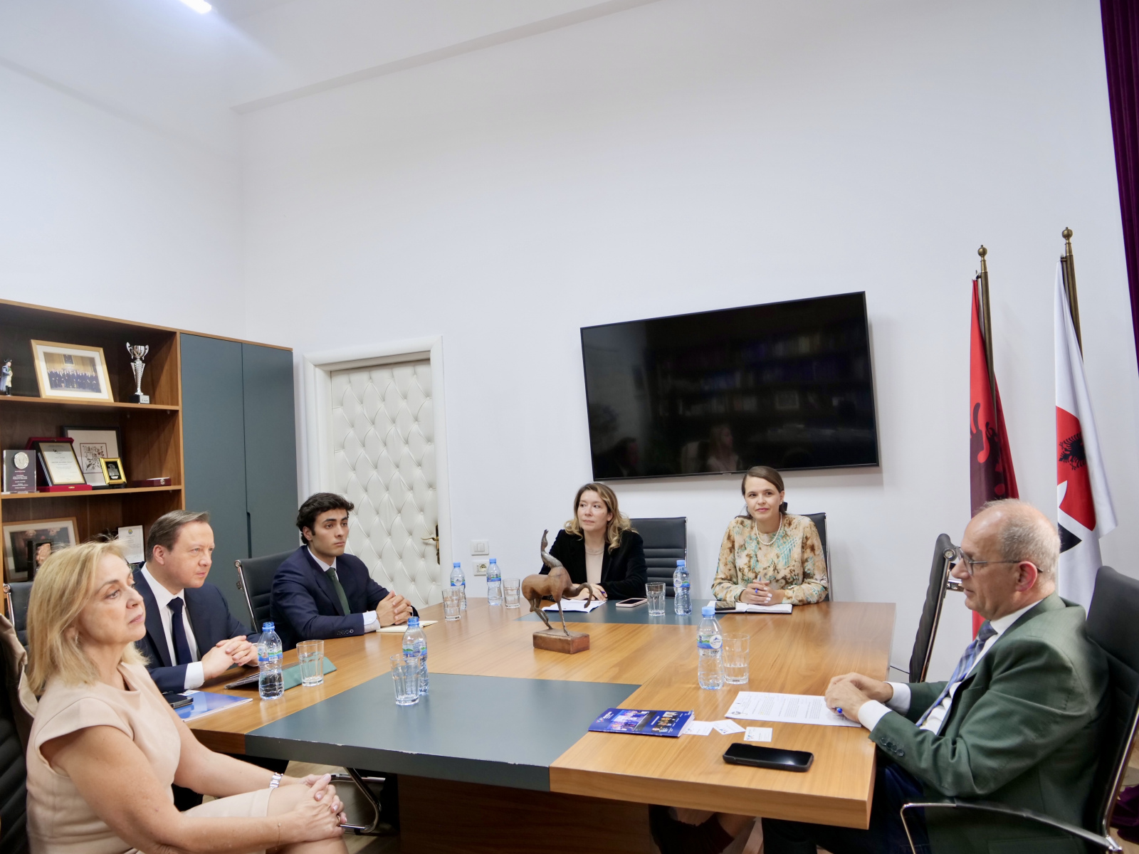 Rektori i Universitetit të Tiranës, Prof. Dr. Artan Hoxha, priti në ambientet e UT delegacionin e Fondacionit të Shoqatës Botërore të Juristëve, në kuadër të përgatitjeve për organizimin e Kongresit të Juristëve, i cili do të zhvillohet në Tiranë në vitin 2027.