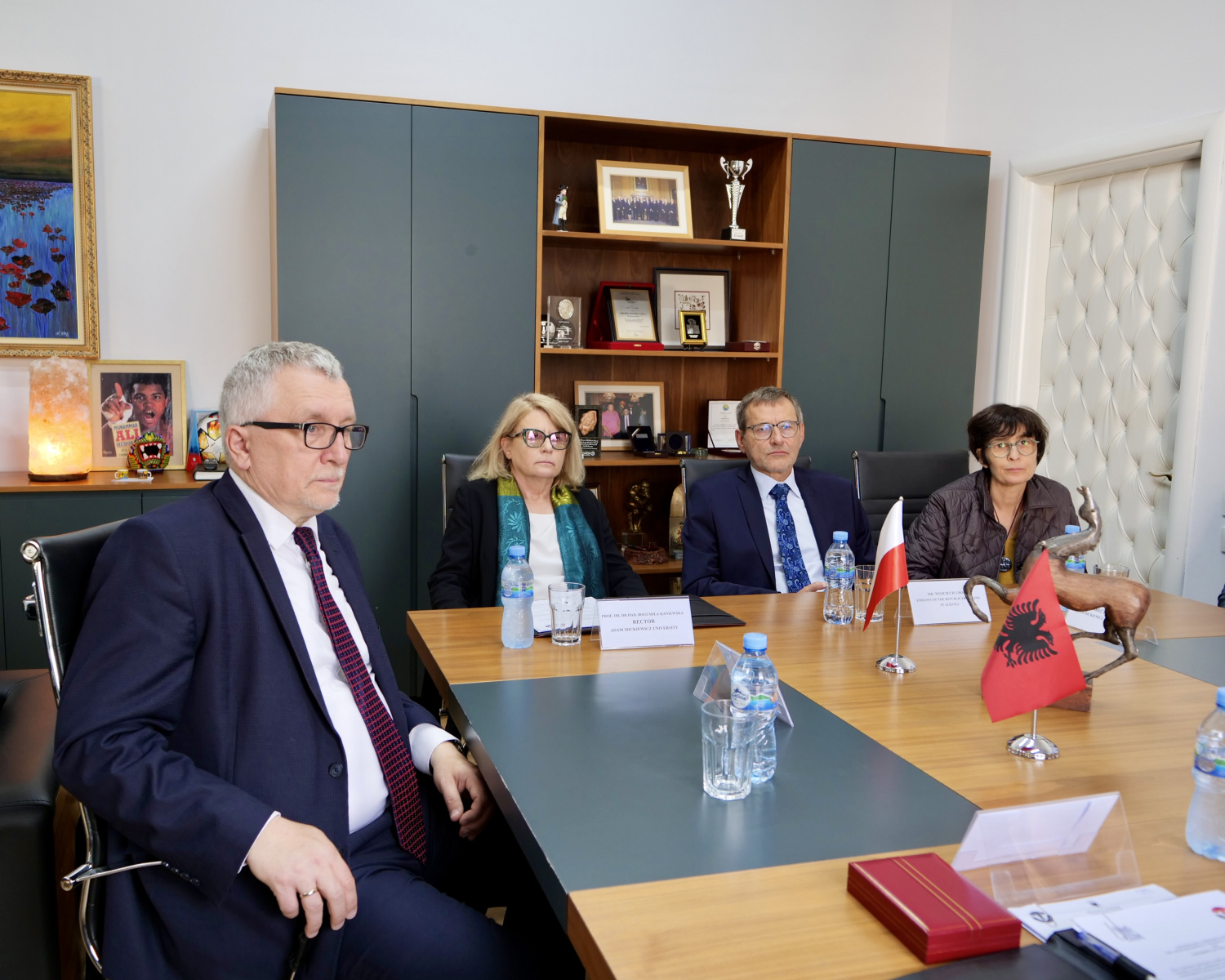 Rektori i Universitetit të Tiranës, Prof. Dr. Artan Hoxha, zhvilloi një takim me një delegacion nga Polonia, të përbërë nga: